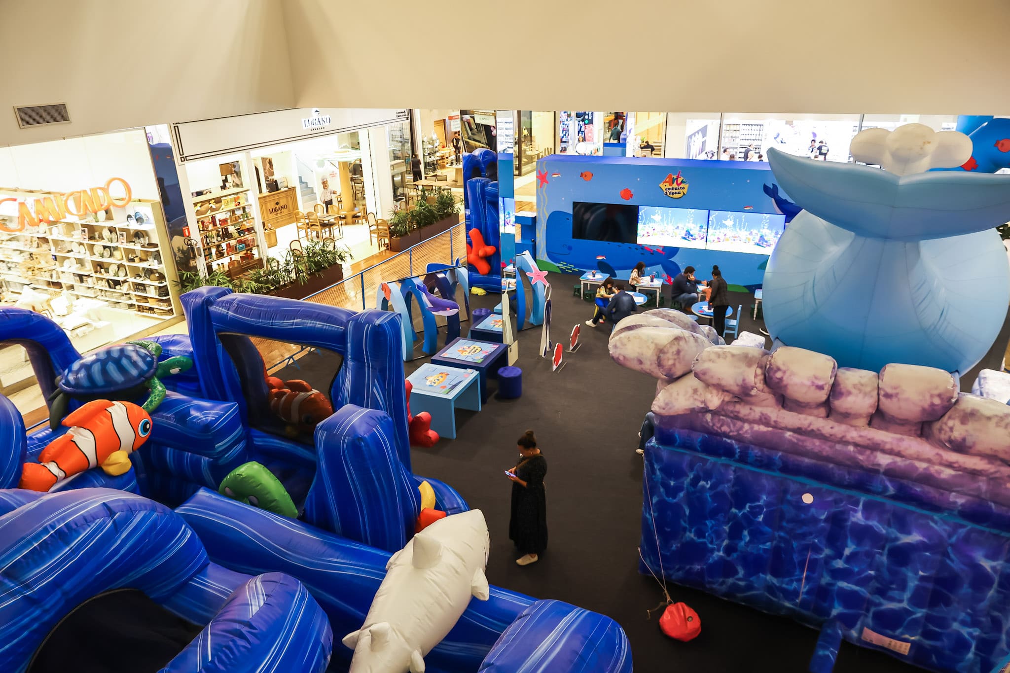 No espaço temático, os pequenos participantes recebem um desenho de um animal marinho que, após sua coloração com giz de cera e lápis de cor, é digitalizado e transmitido no painel de Led de alta resolução com imagens do fundo do oceano.