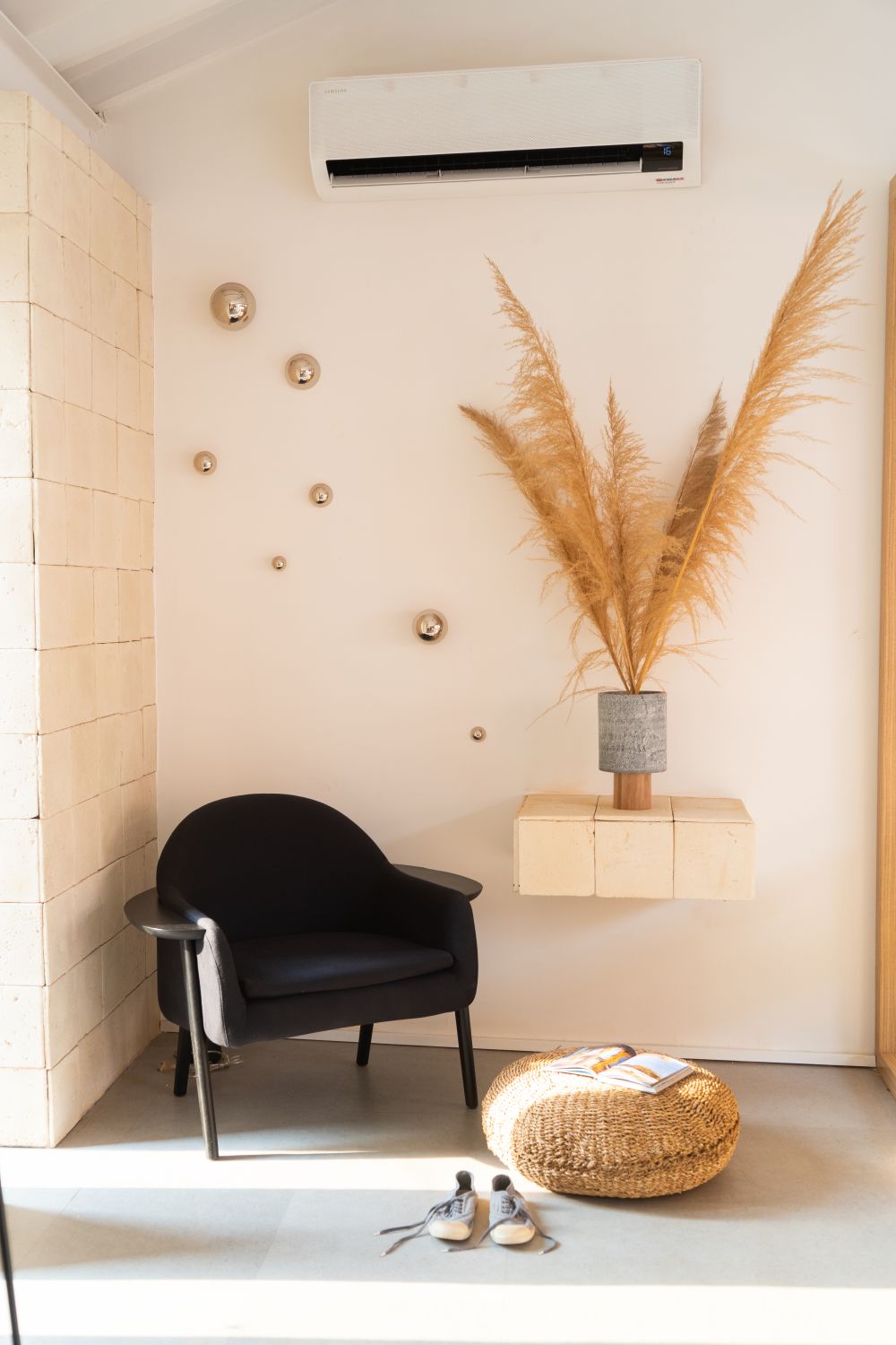 Galhos, troncos trabalhados e folhas secas também ganharam espaço nos ambientes, assim como as plantas, cada vez mais presentes dentro de casa. Além de textura, os arranjos secos também podem proporcionar leveza aos ambientes. O Capim dos Pampas, por exemplo, é uma dessas escolhas, que podem complementar com sofisticação ambientes minimalistas.