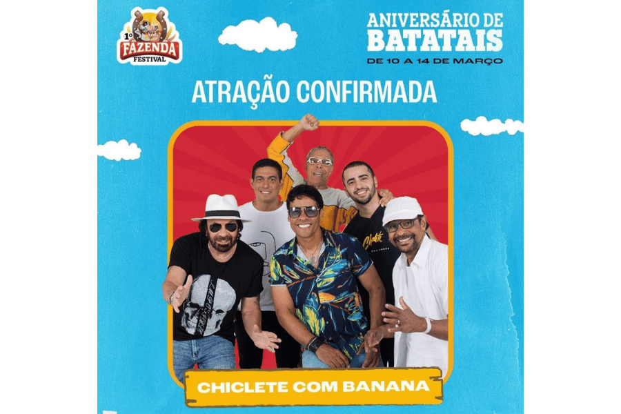 O Fazenda Festival, evento de entretenimento e gastronomia, terá sua primeira edição realizada em Batatais nos dias 10, 11, 12, 13 e 14 de março de 2023, no Centro de Eventos Antônio Carlos Prado Baptista e contará com atrações artísticas de vários segmentos como pop, rock, samba, pagode, sertanejo raiz, entre outros. A organização do evento promete atrações que estarão pela primeira vez em Batatais e algumas surpresas para quem participará