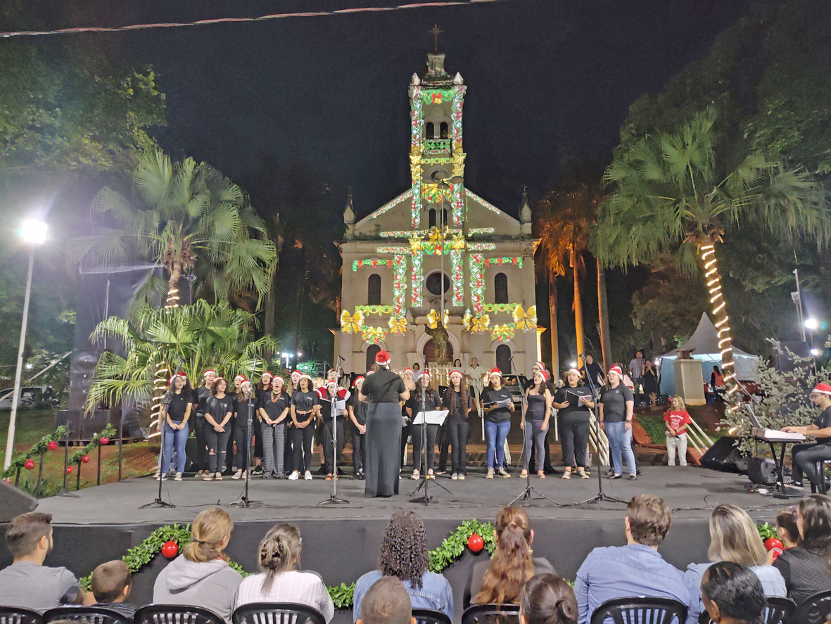 O coral apresentou diversas músicas natalinas e contou com a presença de um grande público, que se juntou para acompanhar todas as canções.