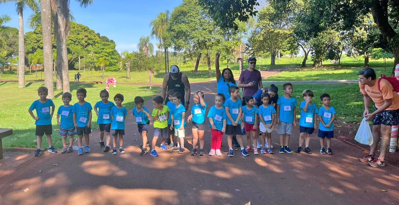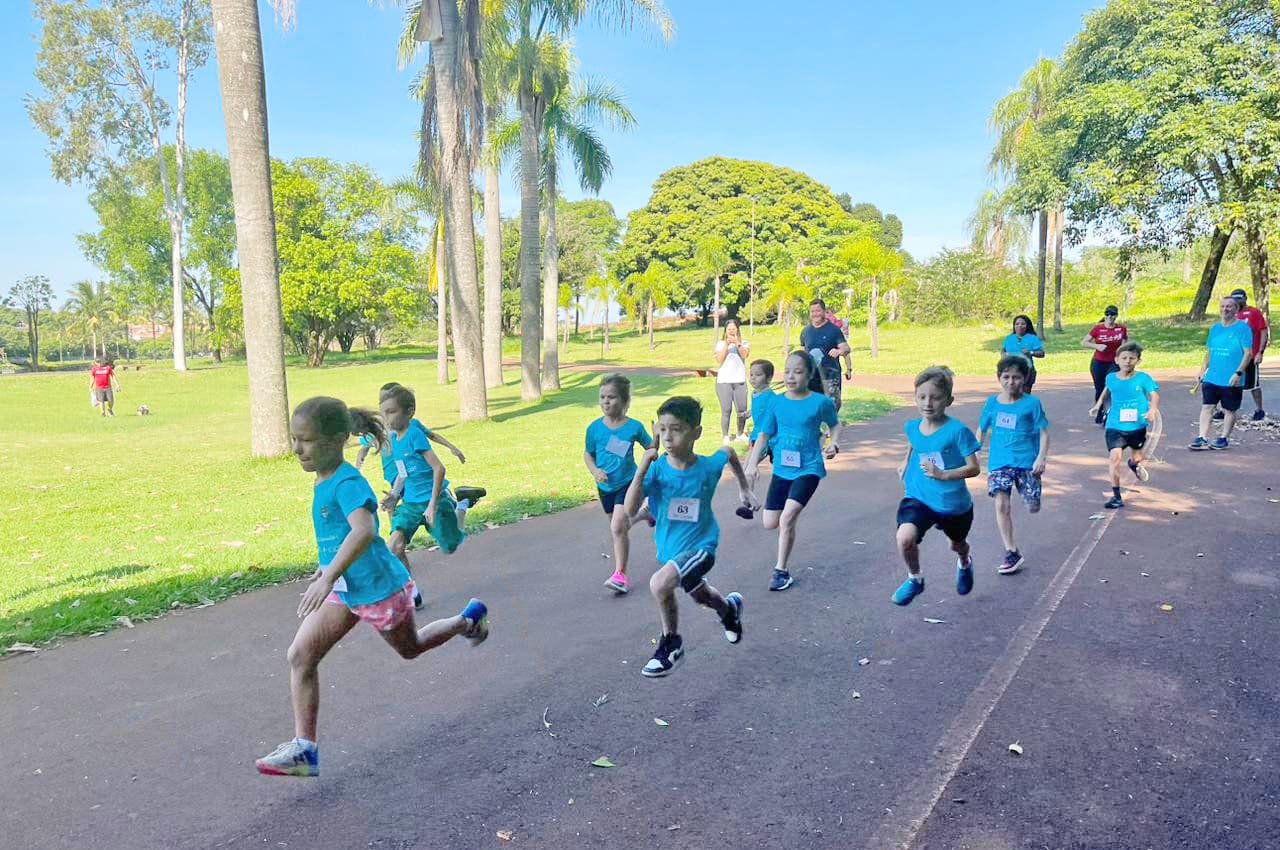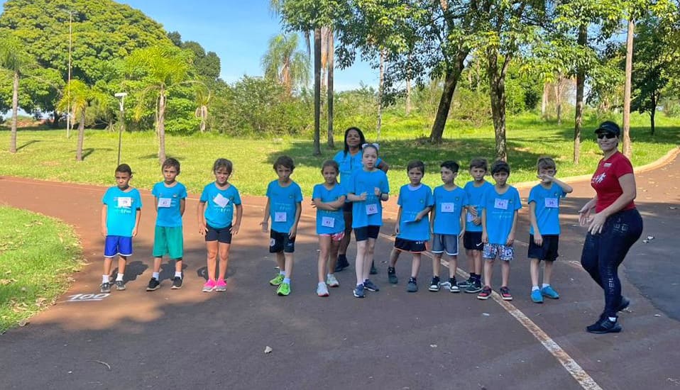 A categoria de 2 a 3 anos correu 60 metros; de 4 a 5 anos foram 80 metros; 6 a 7 anos com 100 metros; 8 a 9 anos 150 metros; 10 a 11 metros 200 metros e 12 anos foram 300 metros.