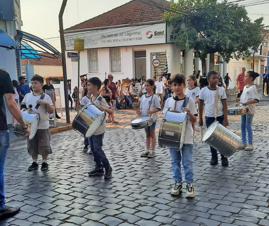 A cidade de Cravinhos se fez presente com as quatro fanfarras dos projetos de Iniciação Instrumental, que acontecem nas escolas municipais de Ensino Fundamental “Antonio Joaquim da Silva”, “João Nogueira”, “Maria Virgínia Matarazzo Ippólito” e “Moacyr Martins dos Santos”.