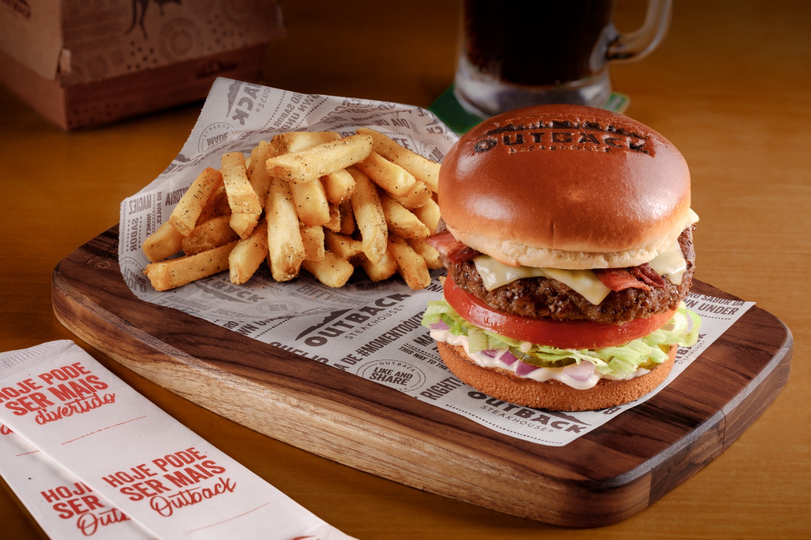 Entre as opções servidas pelo Outback Steakhouse, o queridinho The Outbacker Burger é um clássico do restaurante, com um hambúrguer acompanhado de queijo, tomate, alface, maionese. Para aqueles que gostam de conhecer novos sabores o Truffled Burguer garante o Bold Flavor com um hambúrguer acompanhado de queijo cheddar, bacon, as famosas Bloom Petals e o diferencial de maionese trufada. Já para os que optam por versões vegetarianas, o Veggie Blue Cheese Burger é uma ótima opção, um hambúrguer vegetariano empanado com mix de queijos derretidos, molho gorgonzola e salada.