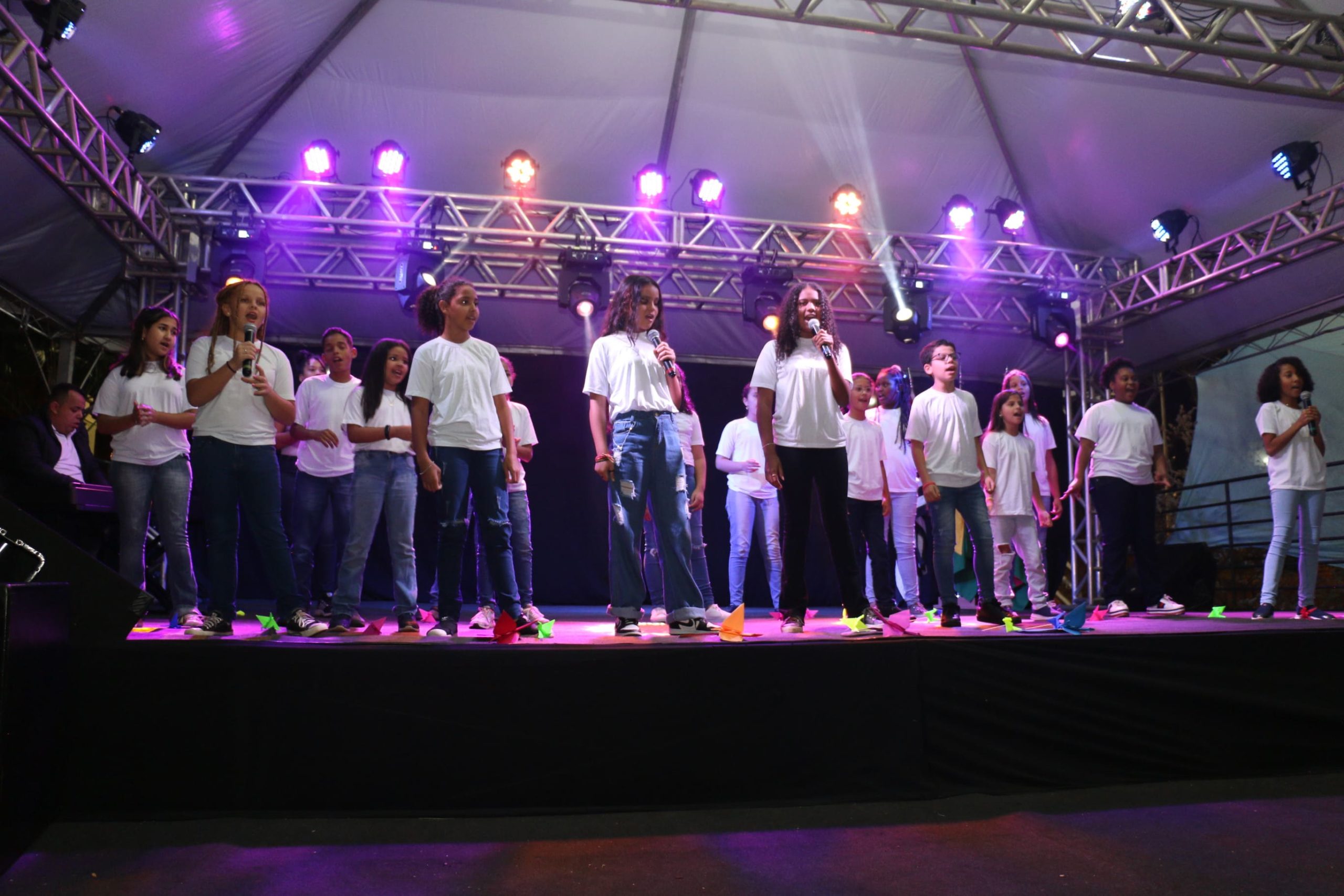 A abertura da Feira do Livro de Cravinhos também contou com a apresentação dos alunos do coral do Projeto Educação Integrada, e também a dança do Projeto Allegro de Dança.