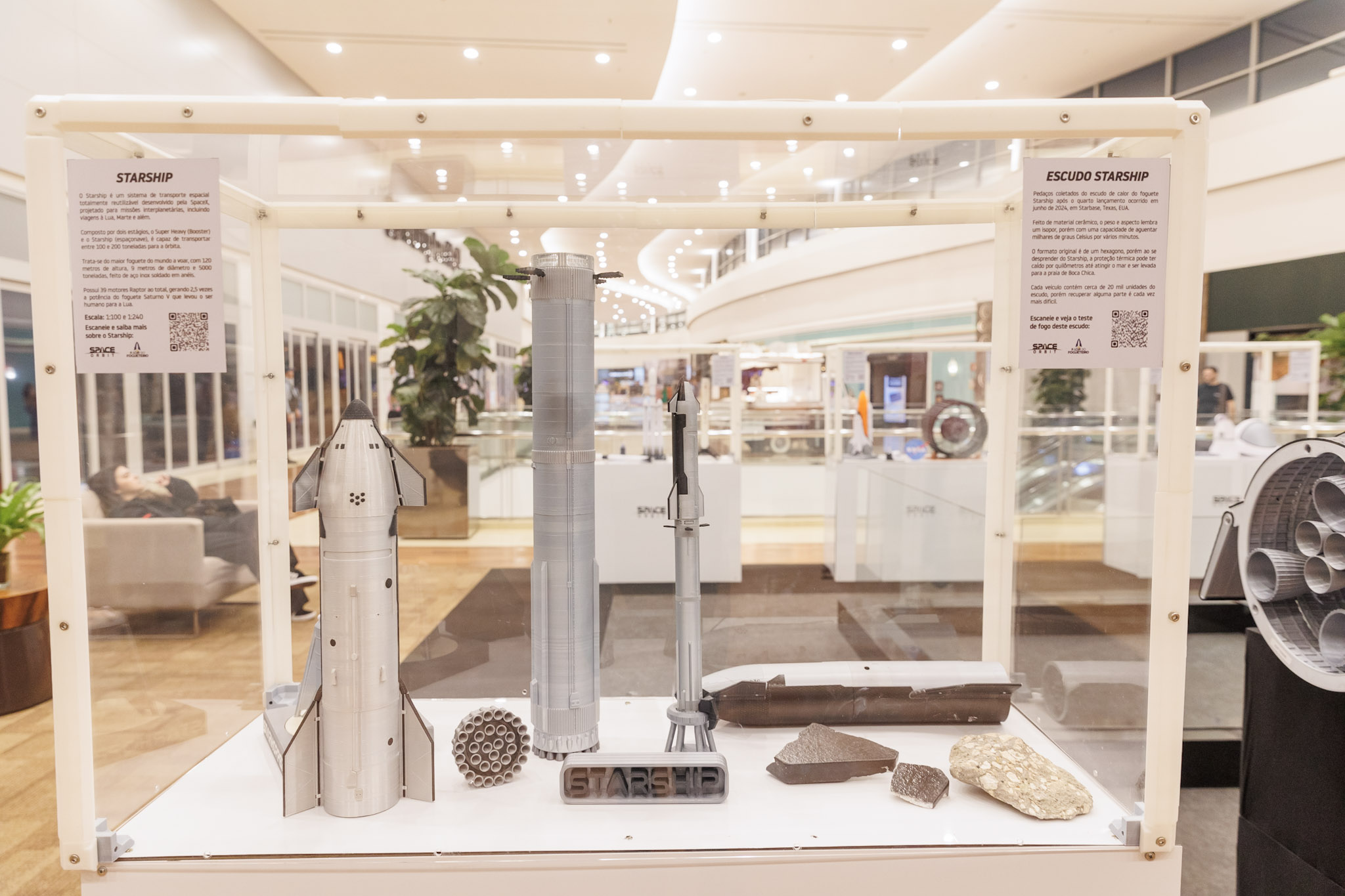 A mostra, que reúne 20 réplicas em escala dos foguetes mais famosos da história da exploração espacial, conta com alguns itens icônicos como o Ônibus Espacial e Space Launch System da NASA, os modernos Falcon 9 e Falcon Heavy, além da maior maquete do mundo do foguete Starship, com mais de seis metros de altura.
