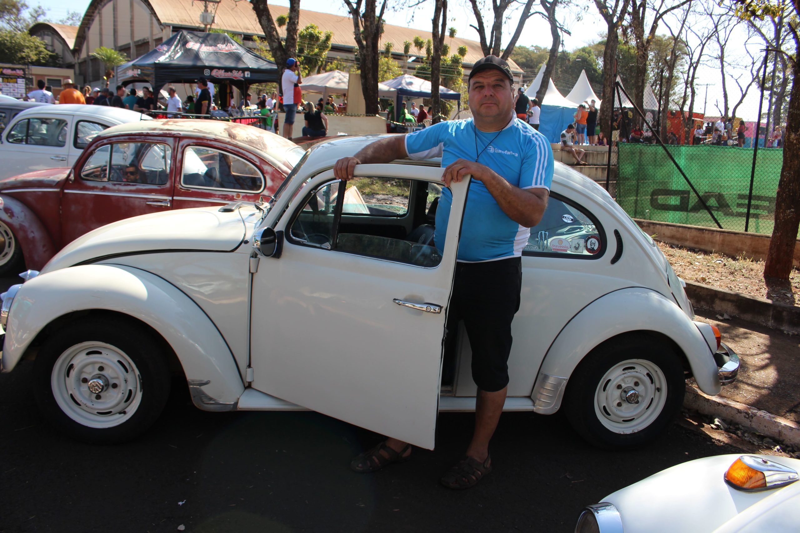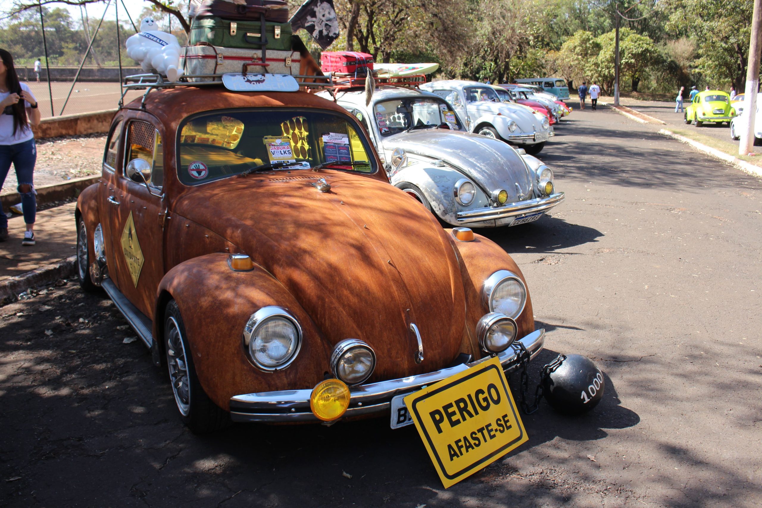 Ao lado do Phusca, estava o Ferrugem, que também chamou a atenção dos visitantes pelo seu aspecto enferrujado. “O meu tio teve a ideia de lixar toda lataria para deixá-lo enferrujar. Ele tomou muita chuva e sol, além disso, fomos jogando produtos corrosivos para torná-lo o mais diferente possível”, contou.