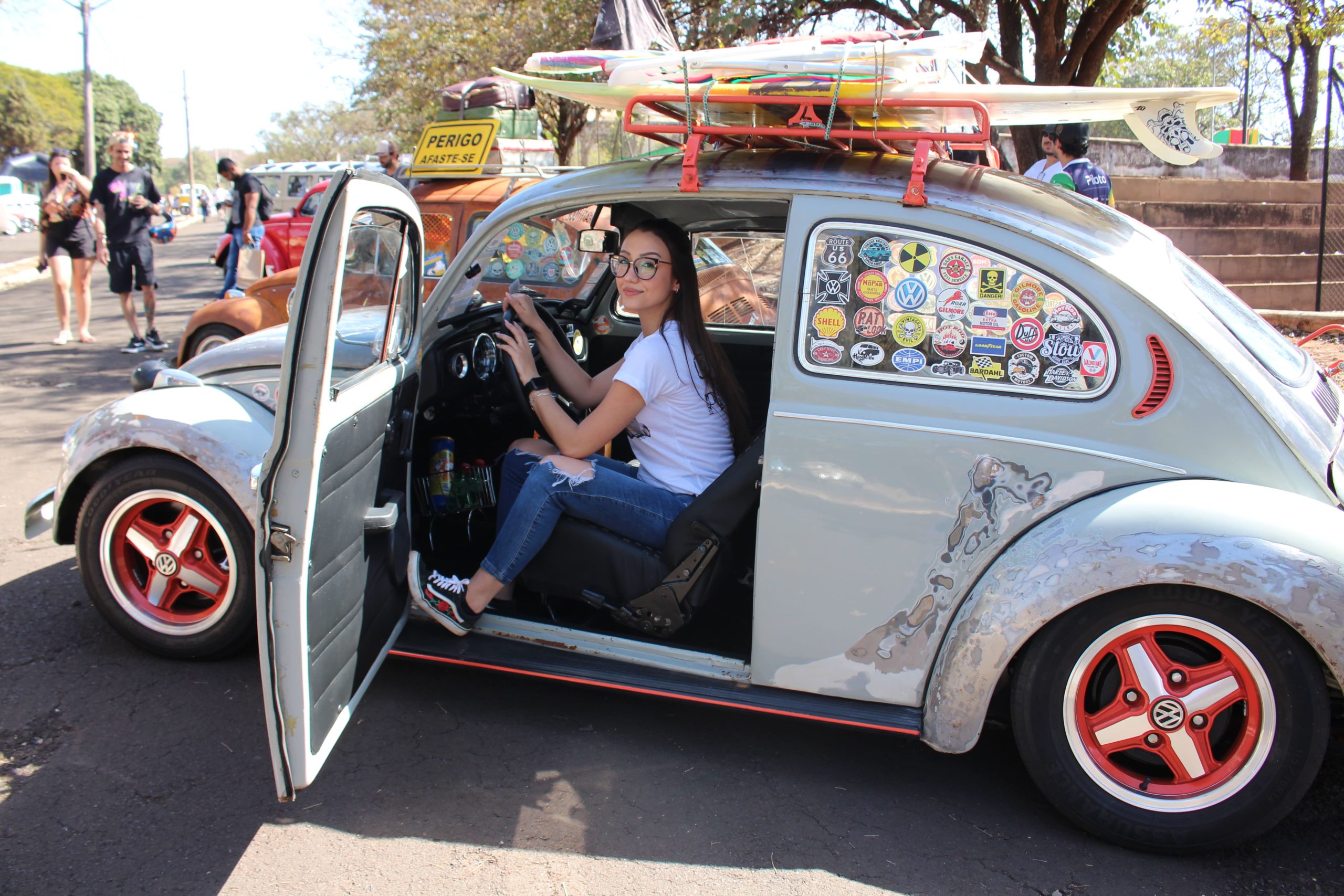 A vendedora Ana Beatriz Nogueira, que tem 25 anos, e mora em Ribeirão Preto (SP), foi uma das expositoras do evento. Ela conta que é apaixonada por fuscas desde quando tinha 5 anos de idade, carinho que herdou do pai, Carlos Renato Nogueira e do tio Maurício Lucheta. Quando completou 18 anos, ela contou que pediu um fusca de presente. “Eu sempre fui encantada pelos fuscas, então eu sempre sonhei em ter um. Foi aí que apareceu o “Phusca” que é todo irreverente por conta da utilização do estilo Rat Look, veículos com aparência de abandono”, explicou.