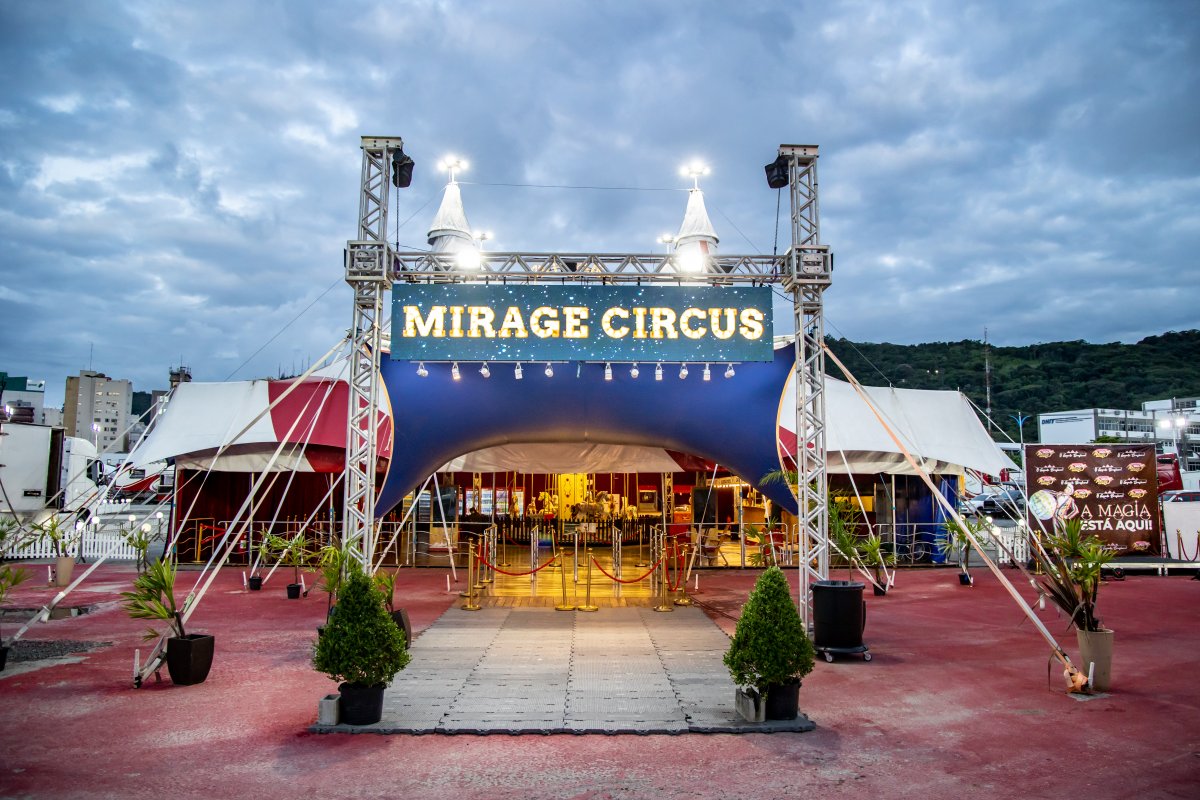 O espaço conta com ar-condicionado, praça de alimentação e estacionamento oficial na entrada principal do circo.