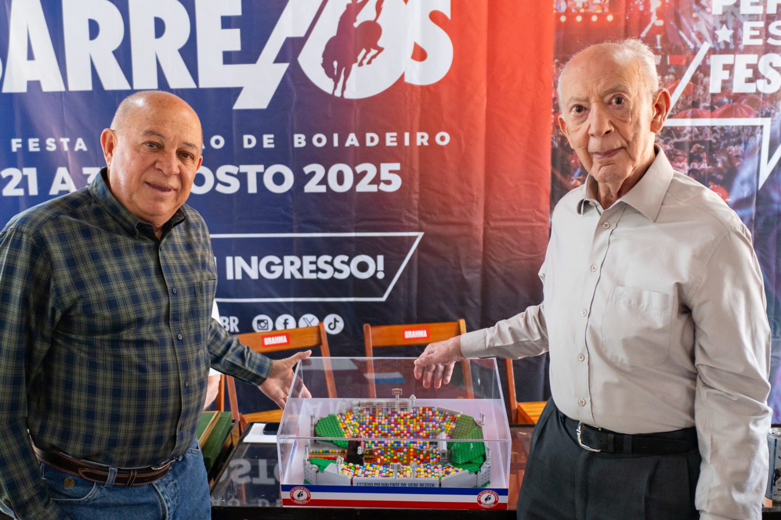 Outro momento marcante foi a homenagem ao ex-prefeito de Barretos e membro benemérito de Os Independentes Uebe Rezeck, que recebeu uma réplica do Estádio de Rodeios que leva seu nome em blocos montáveis.