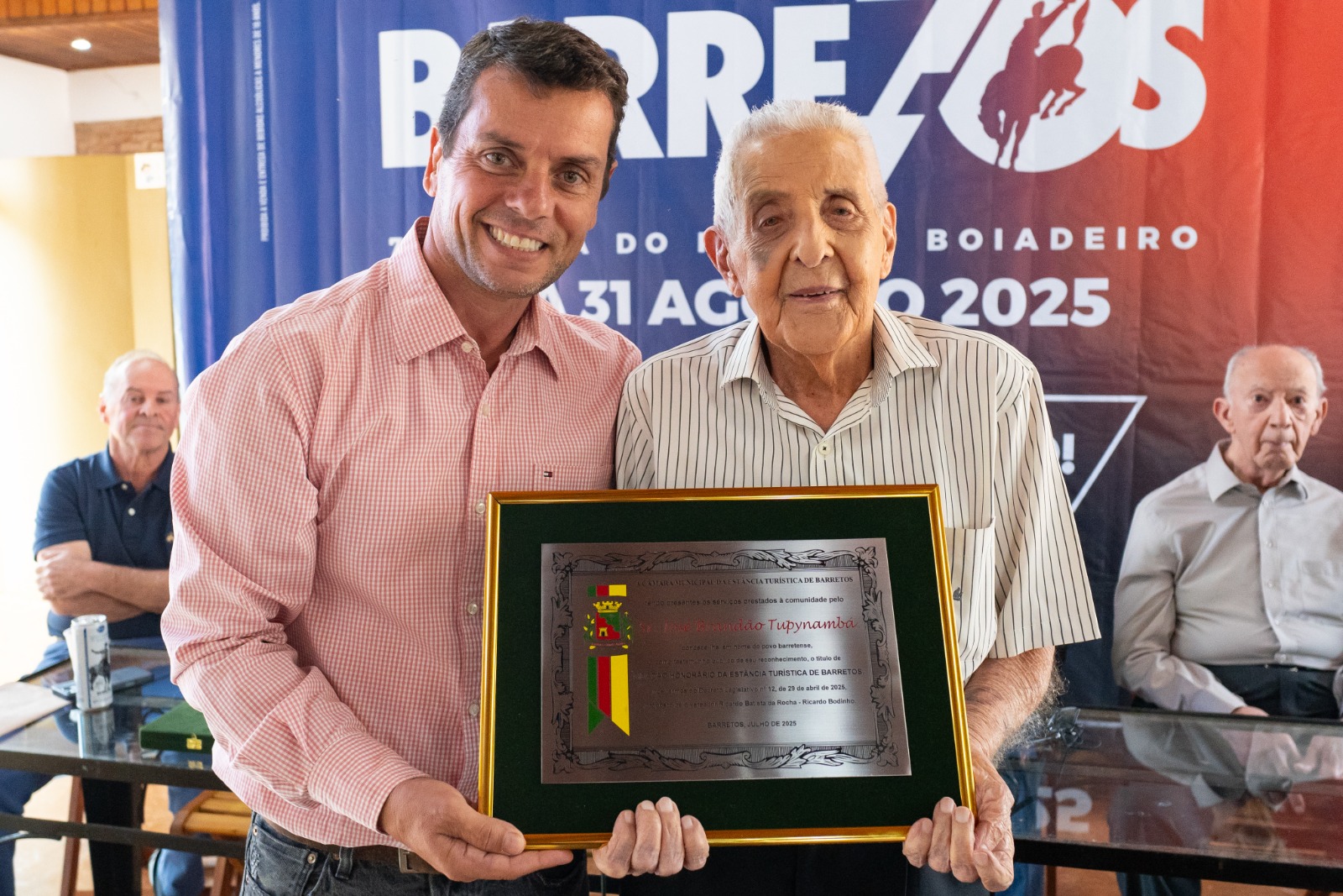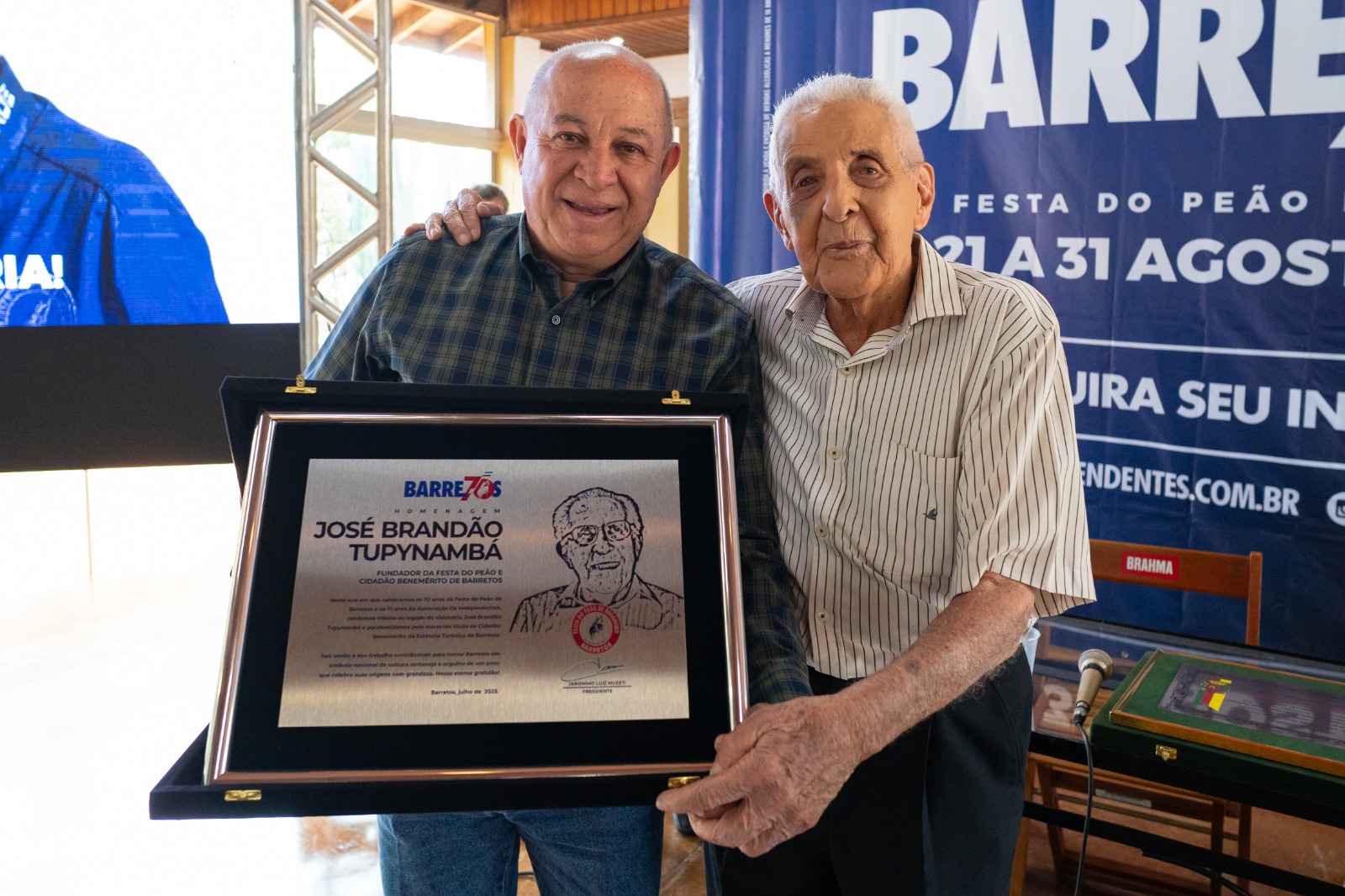 Entre as homenagens, o fundador José Brandão Tupynambá, de 97 anos, recebeu o título de Cidadão Honorário de Barretos, proposto pelo vereador e 2o vice-presidente de Os Independentes Ricardo Batista da Rocha, o Bodinho. Sr. Tupy, único fundador vivo, também recebeu uma placa de agradecimento por todo seu trabalho e dedicação à Associação e à Festa. Também foi exibido um vídeo promocional que conta com a participação do fundador e que será exibido nacionalmente em mídia televisiva.