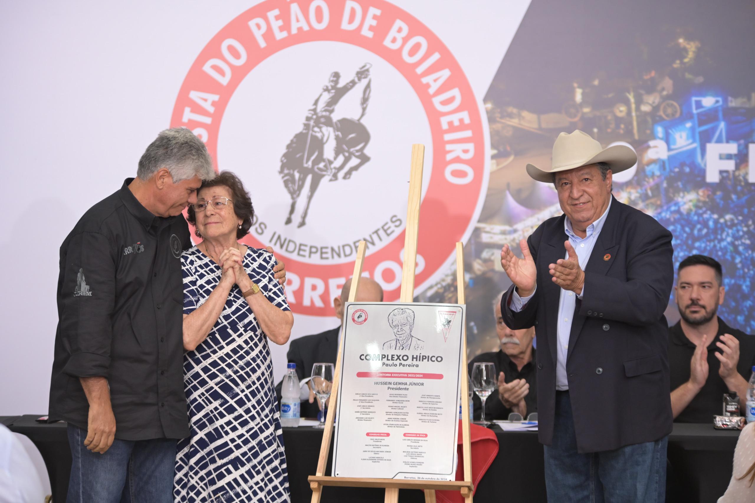 A cerimônia de posse contou ainda com uma homenagem ao fundador de Os Independentes, Paulo Pereira, falecido em julho de 2024, com o descerramento da placa do Complexo Hípico do Parque do Peão que levará seu nome.