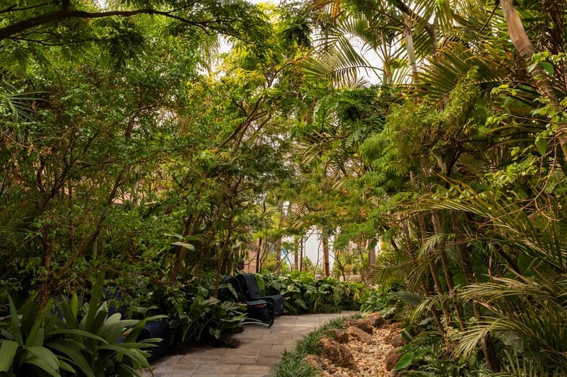 Já no espaço idealizado pelo profissional Murilo Spagnhol, também é possível conhecer uma diversidade de plantas em um ambiente capaz de desconectar o visitante do resto do mundo. O Jardim Tropical traz o conceito do paisagismo com uma composição de espécies de diferentes alturas, tipos de folhagem e texturas para inserir o ambiente natural no contexto urbano.